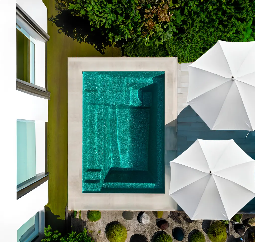 This pool is visually striking owing to the L shape design of the bench and steps. We named it Leonis in tribute to the brightest star in the Leo constellation and because this sign of the zodiac evokes the sun and the heat of summer. Leonis is ideal for socialising, allowing you to enjoy a good chat while chilling on the roomy and elegant submerged bench that runs along the side of the pool. And its spacious bathing area makes it perfect for a swim or for cooling off. Leonis incorporates many features that make it a safe and comfortable choice.