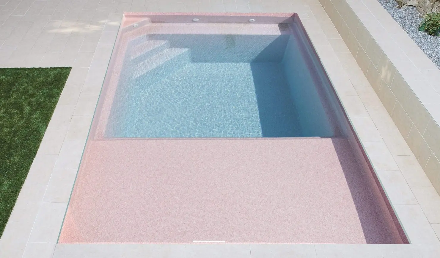 Lorsque vous appliquez la finition Gravity à Iris, vous obtenez un point exclusif qui transforme votre piscine. Chez Gravity, nous avons appliqué sur toutes les surfaces antidérapantes un grès cérame qui s’intègre parfaitement sans créer d’irrégularités. Le résultat est un modèle hybride unique qui attirera tous les regards. Les pierres offrent des combinaisons harmonieuses et originales et des combinaisons originales qui, en accord avec la couleur de la piscine choisie, donnent une multitude de combinaisons qui confèrent à votre piscine une touche différente et personnelle et la personnalisent. Imaginez ce que cela donnerait dans votre jardin.